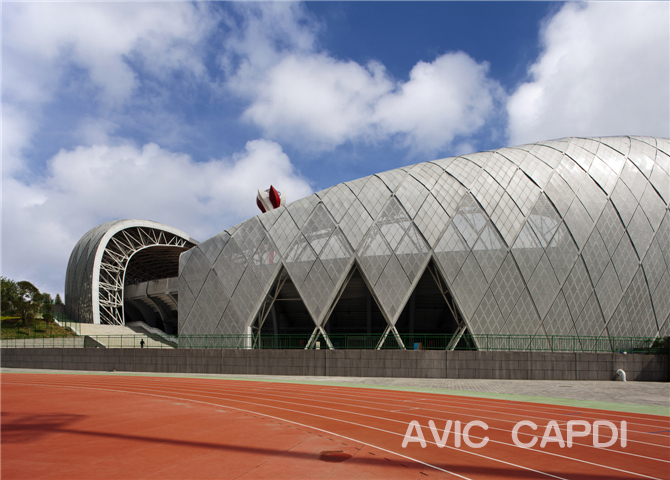 Notes of Interest: This 51,636 seated sports centre is designed with enclosed type spectator terrace, which is constructed along the mountain shape at east with a 6-story functional rooms at west. VIP area, athlete area, media area, public body-building area, supporting technical rooms are furnished in this facility. The maximum height of the roof cover is 52.25m.